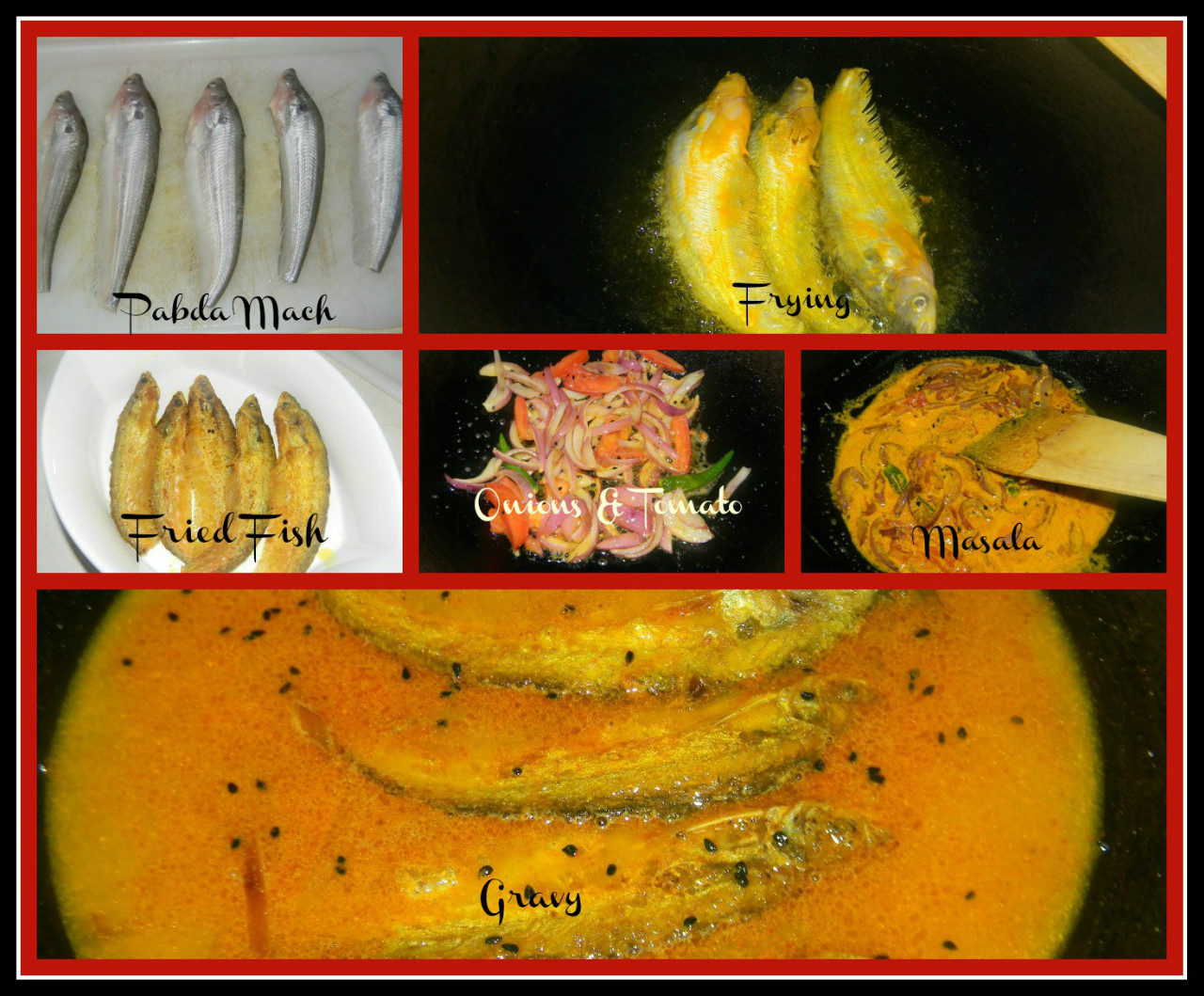Marinate the fish pieces with some salt & turmeric, and fry them till the fish pieces golden brown.