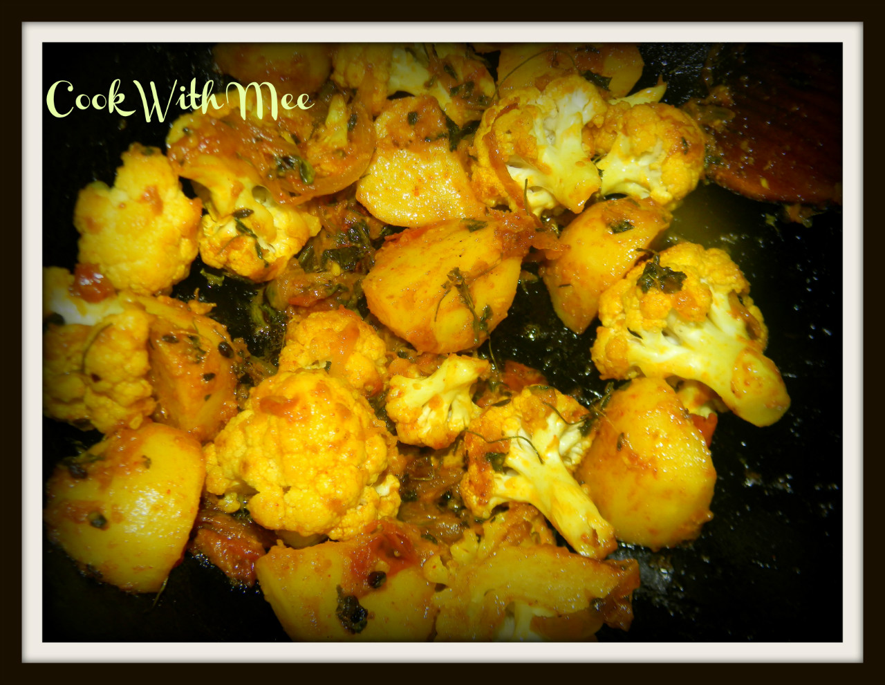 Now add the fried cauliflower and fried potatoes. Cook for few mints.